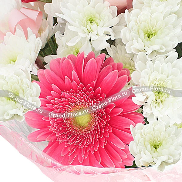 В объятиях любви - букет из хризантем и гербер (акционное предложение)